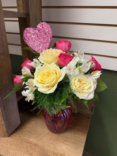 A fresh mix of flowers perfect for your love. Including a vary of flowers in a bright mix of yellows and pinks. Flowers may vary.