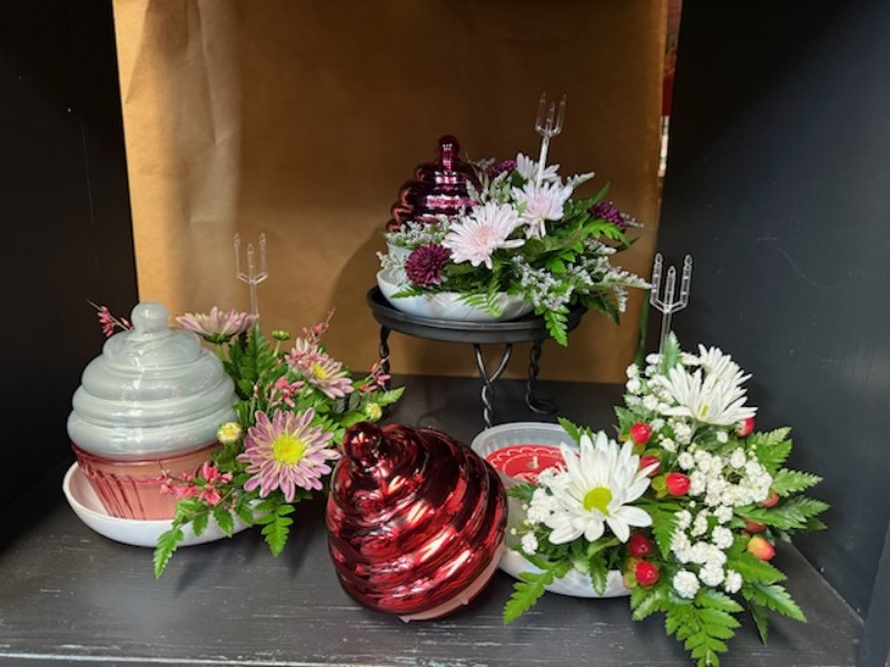 A love that glows! A beautiful arrangement of fresh flower mix with a cupcake scented candle. Candle available in three scents: Red Velvet, Strawberry Shortcake, and Raspberry Creme. Flowers will vary.